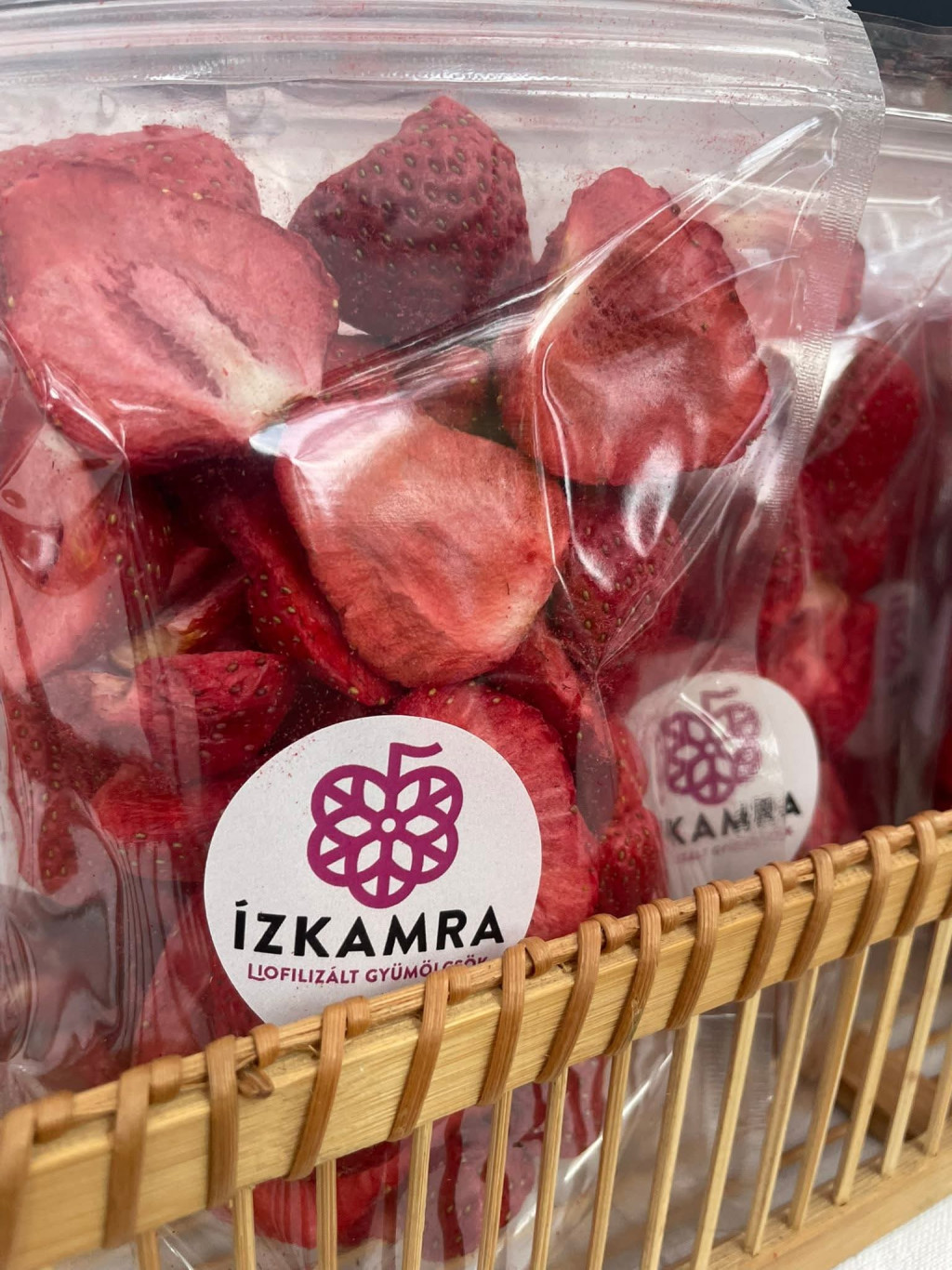 A Magyar Ízek Versenyén aranyérmett szerzett a liofilizált eper termékünk. Az eljárásnak és a prémium minőségű gyümölcsnek köszönhetően a vitamin és az ásványi anyag tartalma 100 %-ban megmarad a gyümölcsnek. Nem tartalmaz tartósítószert, minden mentes termék.