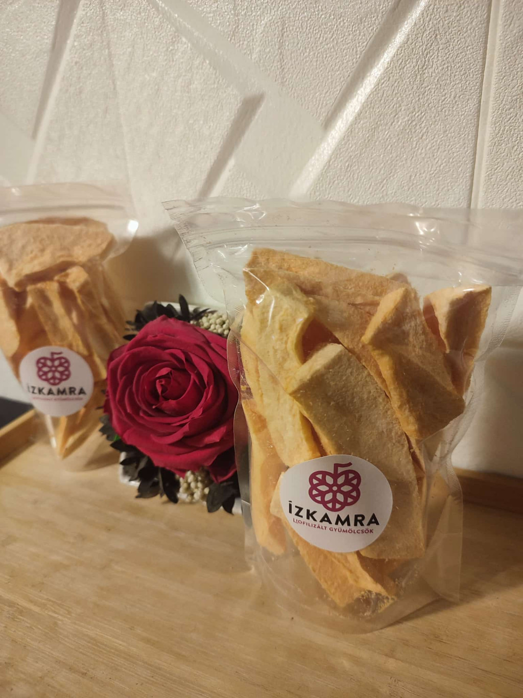 Egy ősi tartósítási módszer igazán modern köntösben: ezek a mi ropogós almachipseink. Az almát mézzel és földimogyoróval gazdagon megszórjuk, ropogósra aszaljuk és visszazárható tasakba csomagoljuk, hogy ropogósságát sokáig megőrizze. Tárolása száraz, hűvös, hideg helyen, napfénytől védve! A csomag 120 gramm mézes mogyorós almachipset tartalmaz.