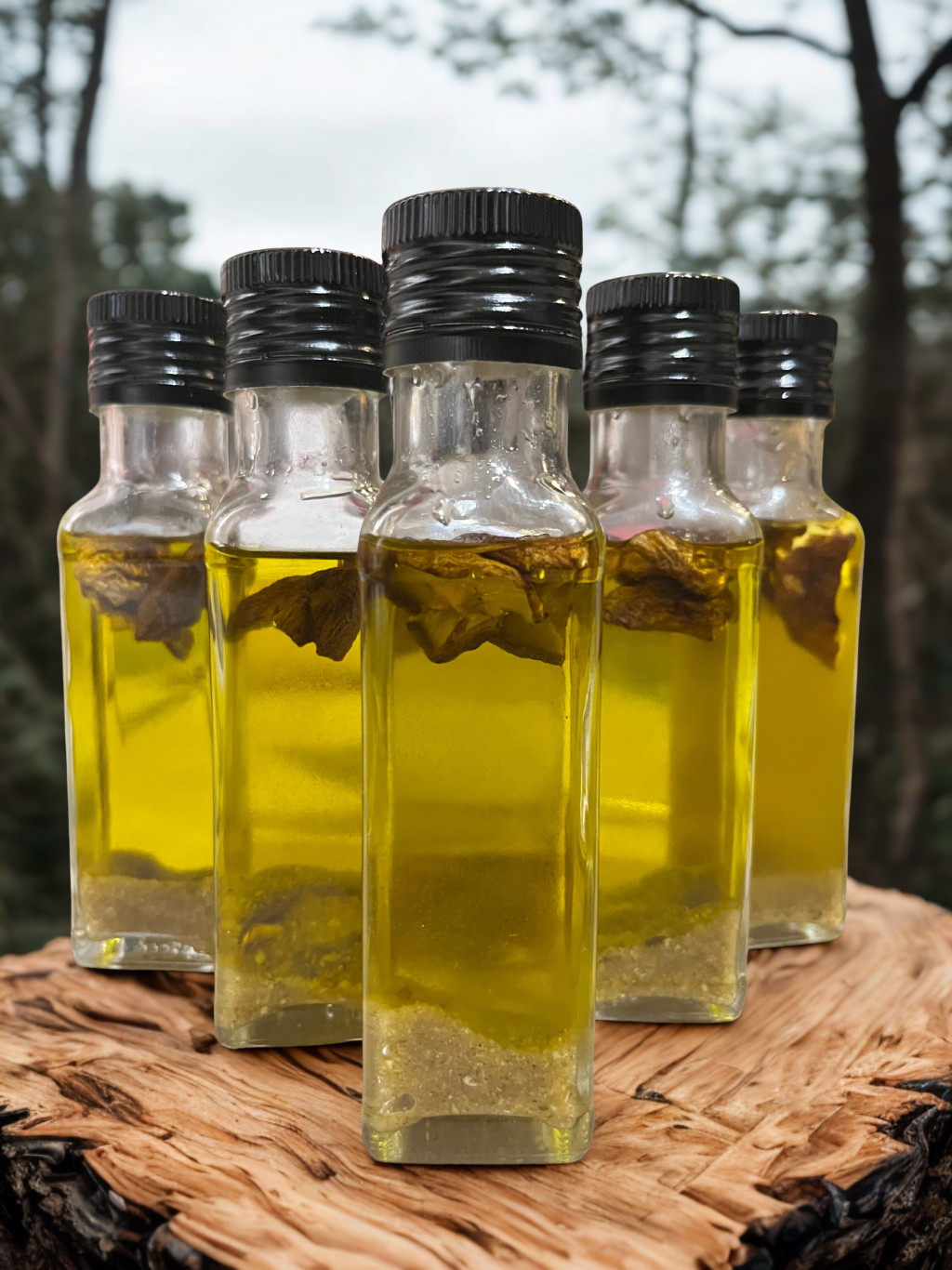 A shiitake fűszerolaj egy karakteres, természetes ízfokozó, amely a shiitake gomba mély, umamis aromáját ötvözi extra szűz olívaolajjal. A gondosan válogatott szárított shiitake gomba és shiitake őrlemény lassan adja át ízét az olajnak, így egy gazdag, mégis kiegyensúlyozott fűszerolaj születik. Kiváló választás azoknak, akik egy csepp olajjal szeretnék különlegessé tenni az ételeiket – mesterséges adalékok nélkül. Felhasználási javaslat pirított zöldségekhez tésztákhoz, rizses ételekhez gombás fogásokhoz salátákhoz, marinádokhoz húsok, halak vagy tofu utóízesítésére pirított kenyérre, focacciára csöpögtetve Összetevők extra szűz olívaolaj szárított shiitake gomba shiitake őrlemény Használat előtt felrázandó!