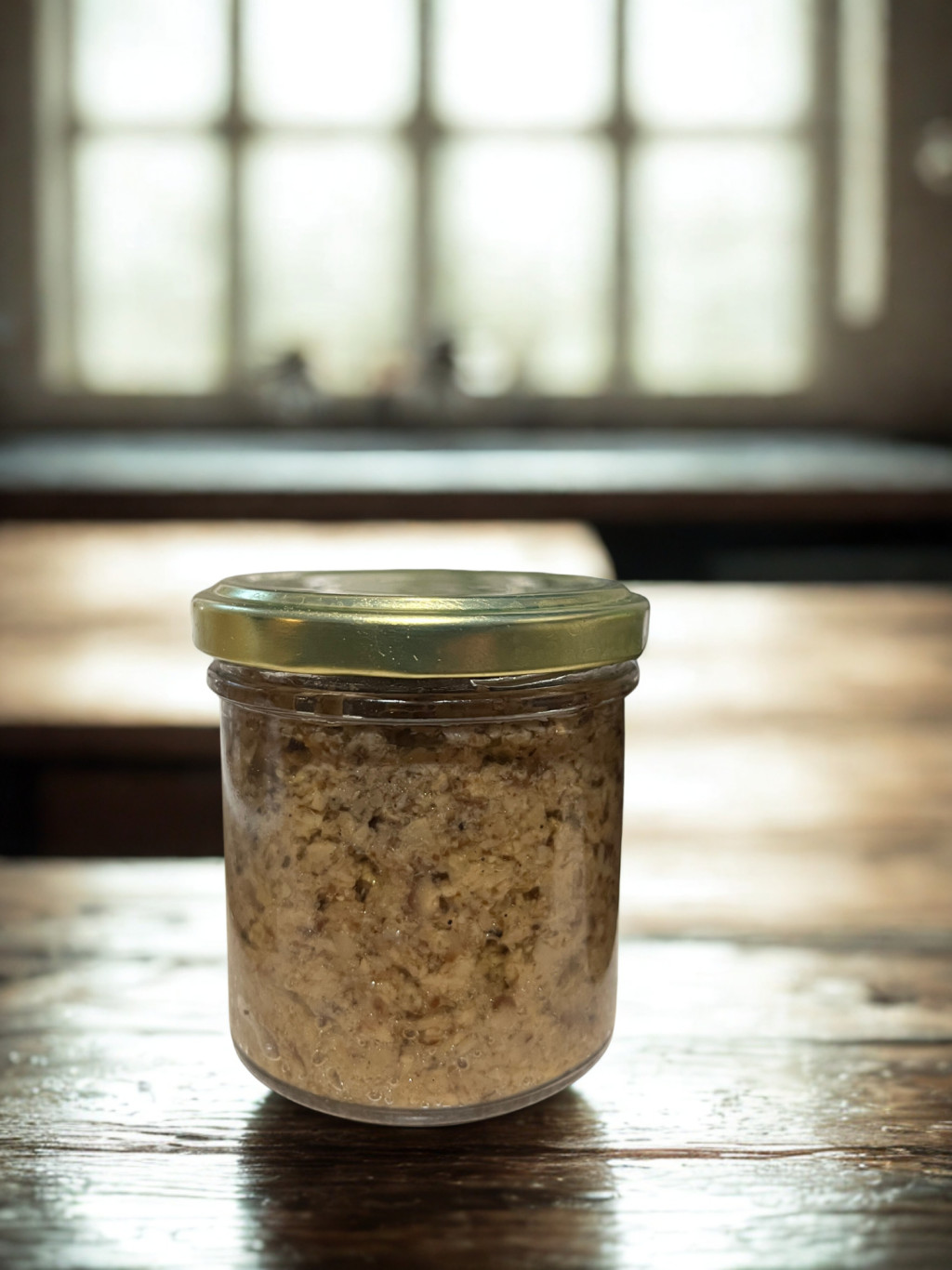 A shiitake pástétom egy selymes állagú, gazdag ízvilágú krém, amely a shiitake gomba természetes, umamis karakterére épül. Gondosan válogatott alapanyagokból készül, kiegyensúlyozott fűszerezéssel, hogy a gomba íze érvényesüljön. A termék hőkezeléssel tartósított, így megőrzi minőségét tartósítószer hozzáadása nélkül. Ideális választás mindennapi fogyasztásra és különleges alkalmakra egyaránt. Felhasználási javaslat friss kenyérre vagy pirítósra kenve szendvicsekhez, wrapekhez hidegtálakhoz, sajttálak mellé zöldségekhez mártogatósként előételként, vendégvárónak Tartósítás és tárolás Hőkezeléssel tartósított Tartósítószert nem tartalmaz Felbontás után hűtőben tárolandó Jellemzők természetes alapanyagok adalékanyag-mentes vegetáriánus gazdag, gombás ízvilág