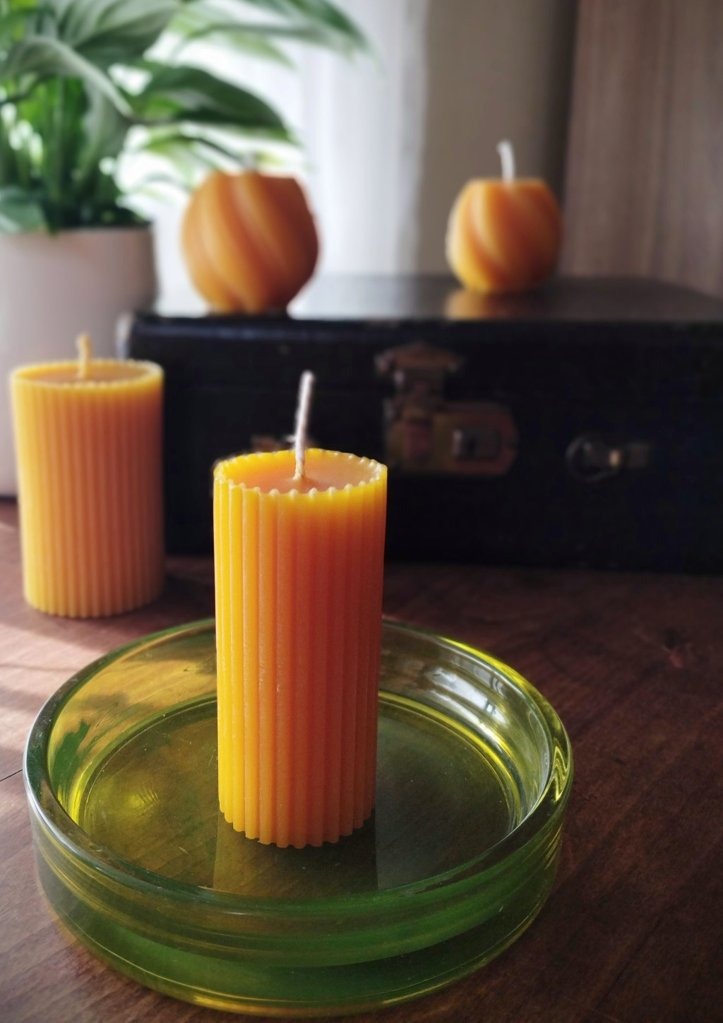 Bordázott henger gyertya 100% méhviasz gyertya saját méhészetünkből, amely természetes, meleg fényével és kellemes illatával beragyogja a mindennapokat. Alapanyagát, a méhviaszt a méhek termelik. A méviasz gyertya környezetbarát választás, égéskor nem bocsát ki káros vegyi anyagokat, így nem terheli a lakás levegőjét. Hoszabb ideig ég mint más gyerták, és tisztán ég - nem csöpög, nem füstöl - ezáltal is kellemesebb a használata. A méhviasz gyertya fénye meleg, a napfényhez hasonló árnyalatú. Ez a meleg fény nem csupán a hangulatot fokozza, nyugtató hatású testre és lélekre egyaránt: lassít, ellazít, segít elcsendesedni amikor szükségünk van a természetes egyensúlyra. Méretei: 80 mm (magasság), 35 mm (szélesség), Súlya kb. 70 gramm.
