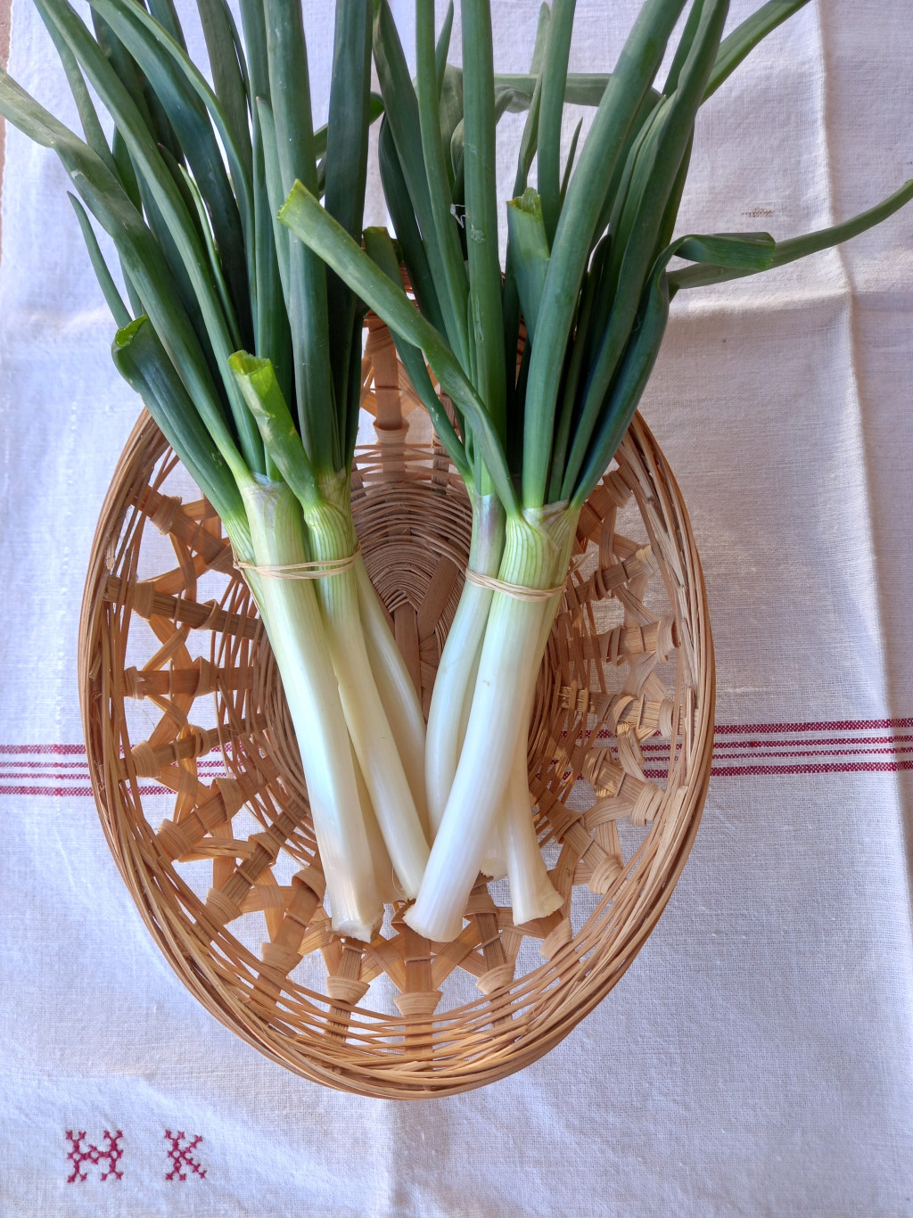 2025 őszén raktuk földbe a kihajtott bio sonkahagymáinkat, mostanra 4-5 szál zöldhagyma nőtt ki mindegyikből. Nekem, aki nem bírja az erőset, kissé csípős ízű. Minden héten szerdán frissen szedjük a rendelt mennyiséget, amíg van belőle. Egy csomóban 5db zöldhagyma van.