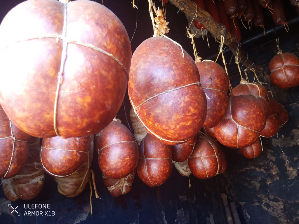 Borókás kolbász. Összetevők: Sertéshús, sertés zsír, só, bors, fokhagyma, borókabogyó. Füstölt. Adalékanyagot, tartósítószert nem tartalmaz. Hűvös helyen tárolandó. ( 0-15 C ) Minőségét megőrzi a gyártástól számított egy évig. Ebből a termékből 1 szál (átlagosan 20 dkg) 1460 Ft-ba kerül. A termék egységára 7300 Ft/kg. A megrendelt szálak árát súlymérés után Ft/kg egységárral számoljuk ki.