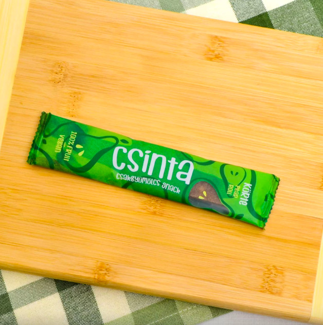 A Körte Csinta, szárított körtés gyümölcstekercs. Azoknak ajánljuk, akik az édesebb és kevésbé intenzív ízeket szeretik. Vegán, gluténmentes diétában is fogyasztható. A termékünk körte és alma felhasználásával készült, ezen kívül nincs benne semmi más. A termék hazai gyümölcsből készül, magas rosttartalmú, egészséges gyümölcsszelet, mely ideális választás az egész család számára – legyen szó a kisgyerekek uzsonnájáról, a munkahelyi tízórairól vagy egy délutáni nassolásról. A különleges kézi szárítás miatt megmarad benne a körte visszafogott ám édes aromája. Ennek az eljárásnak köszönhetően egy igazi, természetes édességet kapunk, mely felnőttek és gyermekek kedvence egyaránt. A Körte Csinta egy nagyszerű alternatívája a hagyományos édességeknek, hiszen nem tartalmaz mesterséges összetevőket, adalékokat, aromákat vagy hozzáadott cukrot, így egészséges édességként fogyasztható. A benne található természetes cukor kiváltja a mesterséges édesítőszereket, így a termék ideális választás az egészségtudatos nassolni vágyóknak, vagy akár a sportolóknak is. Egy új lehetőség, ami színesíti a palettát a tudatos és egészséges táplálkozás terén. Használható különleges ételek, desszertek alapanyagaként. Összetevők: körte, alma és semmi más. Hozzáadott cukrot nem tartalmaz. Általános tápérték 12 g termékben Energia: 159kJ/ 37 kcal Zsír: 0 g, - amelyből telített zsírsav: 0 g, Szénhidrát: 8 g, - amelyből cukor: 8 g, Fehérje: 0,3 g, Só: 0 g Gyártó: Aloha Kft. Pomáz, Magyarország