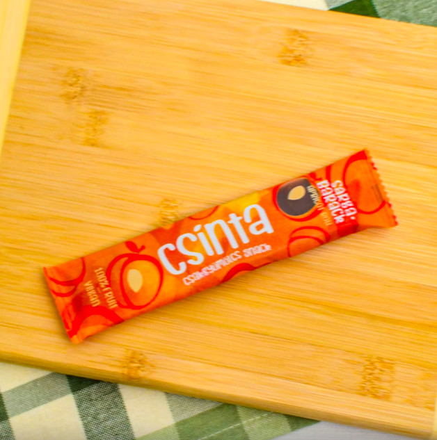 A Sárgabarack Csinta, szárított gyümölcstekercs. Azoknak ajánljuk, akik az édesebb és kevésbé intenzív ízeket szeretik. Vegán, gluténmentes diétában is fogyasztható. A termékünk körte és alma felhasználásával készült, ezen kívül nincs benne semmi más. A termék hazai gyümölcsből készül, magas rosttartalmú, egészséges gyümölcsszelet, mely ideális választás az egész család számára – legyen szó a kisgyerekek uzsonnájáról, a munkahelyi tízórairól vagy egy délutáni nassolásról. A különleges kézi szárítás miatt megmarad benne a sárgabarck visszafogott ám édes aromája. Ennek az eljárásnak köszönhetően egy igazi, természetes édességet kapunk, mely felnőttek és gyermekek kedvence egyaránt. A Sárgabarack Csinta egy nagyszerű alternatívája a hagyományos édességeknek, hiszen nem tartalmaz mesterséges összetevőket, adalékokat, aromákat vagy hozzáadott cukrot, így egészséges édességként fogyasztható. A benne található természetes cukor kiváltja a mesterséges édesítőszereket, így a termék ideális választás az egészségtudatos nassolni vágyóknak, vagy akár a sportolóknak is. Egy új lehetőség, ami színesíti a palettát a tudatos és egészséges táplálkozás terén. Használható különleges ételek, desszertek alapanyagaként. Összetevők: sárgabarack, alma és semmi más. Hozzáadott cukrot nem tartalmaz. Általános tápérték 12 g termékben Energia: 165kJ/ 39 kcal Zsír: 0 g, - amelyből telített zsírsav: 0 g, Szénhidrát: 8,3 g, - amelyből cukor: 8,3 g, Fehérje: 0,6 g, Só: 0 g Gyártó: Aloha Kft. Pomáz, Magyarország