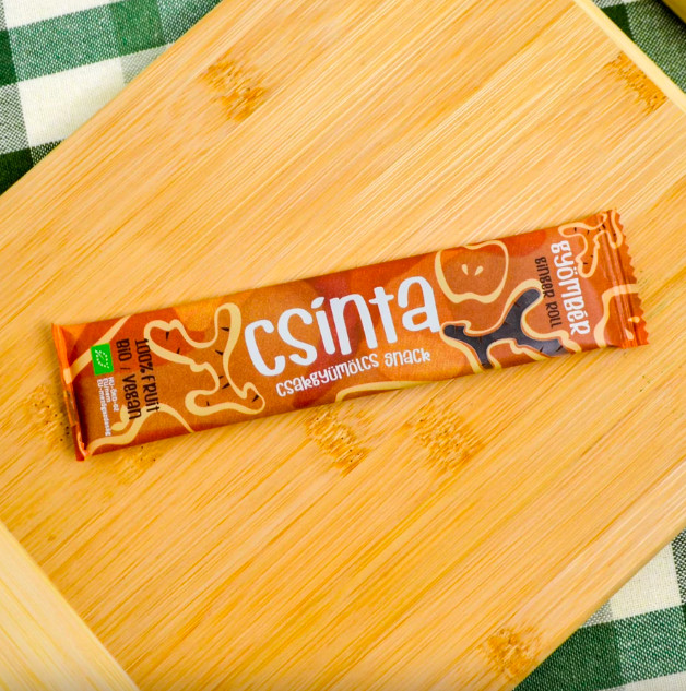 A Bio Gyömbéres Csinta egy egészséges és ízletes édesség, ami kézzel készült, magyar bio alapanyagokból. Rostban gazdag, így kiváló táplálékkiegészítő nasi felnőtteknek és gyerekeknek egyaránt. Az alma és a gyömbér mellett, frissen facsart citromlé és őrölt fűszerek felhasználásával készült, ezen kívül nincs benne semmi más. A Bio Gyömbéres Csinta a gyerekek egyik kedvence, de nagyszerű snack választás az egész család számára is. Az egészséges és finom falatokat szinte bármikor élvezhetjük, legyen szó az irodáról, a suliról, vagy egy hosszú autóútról. Könnyű magunkkal vinni, és nagyszerű alternatívája lehet a hagyományos édességeknek. A Csinták összetevői egyszerűek. Hosszú listában lehetne sorolni azokat a dolgokat, amelyek nincsenek benne: hozzáadott cukor vagy édesítőszer, adalékot, aromát, ízesítő szert, de pektint sem. Ez a szárított gyümölcs snack kiváló választás mindazoknak, akik édességet fogyasztanának, de nem akarják magukat túlterhelni cukorral és mesterséges adalékanyagokkal. Amiből készült: alma, gyömbér, frissen facsart citromlé, frissen őrölt fűszerek és semmi más. Hozzáadott cukrot nem tartalmaz Általános tápérték 12 g termékben Energia: 160 kJ/ 38 kcal Zsír: 0 g, - amelyből telített zsírsav: 0 g, Szénhidrát: 7,9 g, - amelyből cukor: 7,9 g, Fehérje: 0,3 g, Só: 0 g Gyártó: Aloha Kft. Pomáz, Magyarország