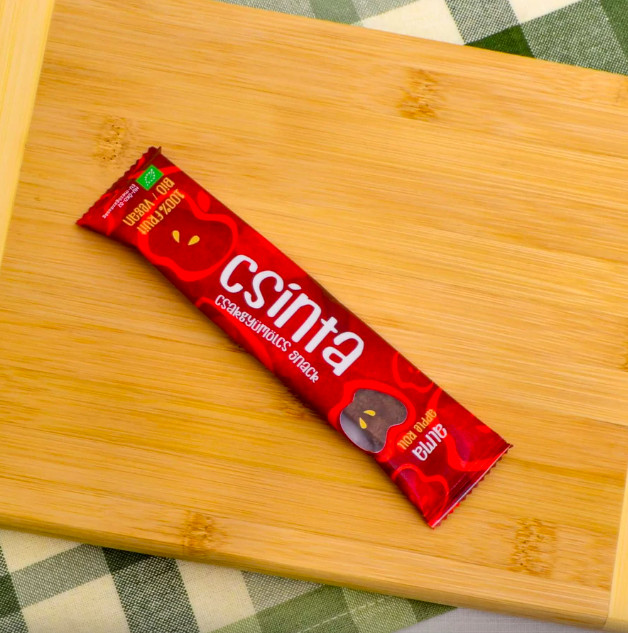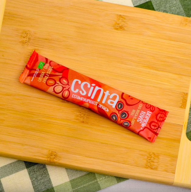 A Bio Alma Csinta egy egészséges és ízletes édesség, ami kézzel készült, magyar bio alapanyagokból. A termék rostban gazdag, így kiváló táplálékkiegészítő nasi felnőtteknek és gyerekeknek egyaránt. Bio Alma Csinta termékünk kizárólag alma felhasználásával készült, ezen kívül nincs benne semmi más. A Bio Alma Csinta a gyerekek egyik kedvence, de nagyszerű snack választás az egész család számára is. Az egészséges és finom falatokat szinte bármikor élvezhetjük, legyen szó az irodáról, a suliról, vagy egy hosszú autóútról. Könnyű magunkkal vinni, és nagyszerű alternatívája lehet a hagyományos édességeknek. A Bio Alma Csinta kizárólag magyar, bio alapanyagokból készül, kíméletes szárítás miatt megmarad benne a gyümölcs saját intenzív íze, aromája, tápanyagai. A Csinták összetevői egyszerű, csak gyümölcs és semmi más :-) Hosszú listában lehetne sorolni azokat a dolgokat, amelyek nincsenek benne. Például a Csinták nem tartalmaznak semmilyen hozzáadott cukrot vagy édesítőszert. Semmilyen adalékot, aromát, ízesítő szert, de pektint sem. Ez a szárított gyümölcs snack kiváló választás mindazoknak, akik édességet fogyasztanának, de nem akarják magukat túlterhelni cukorral és mesterséges adalékanyagokkal. A Bio Alma Csintát sok kézi munkával és odafigyeléssel készítjük, és csak a legjobb minőségű, bio almafajtákat használjuk fel a termelés során. A termék előállításához nincsen szükség mesterséges adalékanyagokra, így az alma ízét és tápanyagtartalmát teljes mértékben megőrzi. Az alapanyagot magyar termelők biztosítják, akik évről-évre egyre nagyobb területen termelnek bio minősítéssel rendelkező gyümölcsöket, mindezek biztosítják a termék magas minőségét és különleges ízvilágát. A Bio Alma Csinta vegán és gluténmentes étrend mellett is fogyasztható. Az Banános eper Csinta a legkisebbek egyik nagy kedvence, egy falat nyár! Összetevői: 40% banán, 40% alma, 20% eper és semmi más Az Banános eper Csinta friss, hazai gyümölcsből készített, magas rosttartalmú, egészséges gyümölcsszelet, mely ideális választás az egész család számára – legyen szó a kisgyerekek uzsonnájáról, a munkahelyi tízórairól, egy közös kirándulásról vagy egy délutáni nassolásról. Használható különleges ételek, desszertek alapanyagaként is. A különleges kézi szárítás miatt megmarad benne az eper különleges ízvilága és aromája. Ennek az eljárásnak köszönhetően egy igazi, természetes édességet kapunk, mely felnőttek és gyermekek kedvence egyaránt. Az Banános eper Csinta egy nagyszerű alternatívája a hagyományos édességeknek, hiszen nem tartalmaz mesterséges összetevőket, adalékokat, aromákat vagy hozzáadott cukrot, így egészséges édességként fogyasztható. A benne található természetes cukor kiváltja a mesterséges édesítőszereket, így a termék ideális választás az egészségtudatos nassolni vágyóknak vagy akár a sportolóknak is. Az Eper Csinta vegán és gluténmentes étrend mellett is fogyasztható, sőt akkor is, ha az ember nem diétázik. Az Eper Csintát alapos kézi munkával és odafigyeléssel készítjük és csak a legjobb minőségű eper és almafajtákat használjuk fel a termelés során. A termék előállításához nincs szükség mesterséges adalékanyagokra és főzés helyett kíméletesen szárítjuk, így a barack és az alma saját, intenzív ízét és tápanyagtartalmát teljes mértékben megőrzi. Hozzáadott cukrot nem tartalmaz. Fénytől védve, zárt csomagolásban tárolva sokáig finom marad Energia: 195 kJ/ 46 kcal Zsír: 0,12 g- , amelyből telített zsírsav: