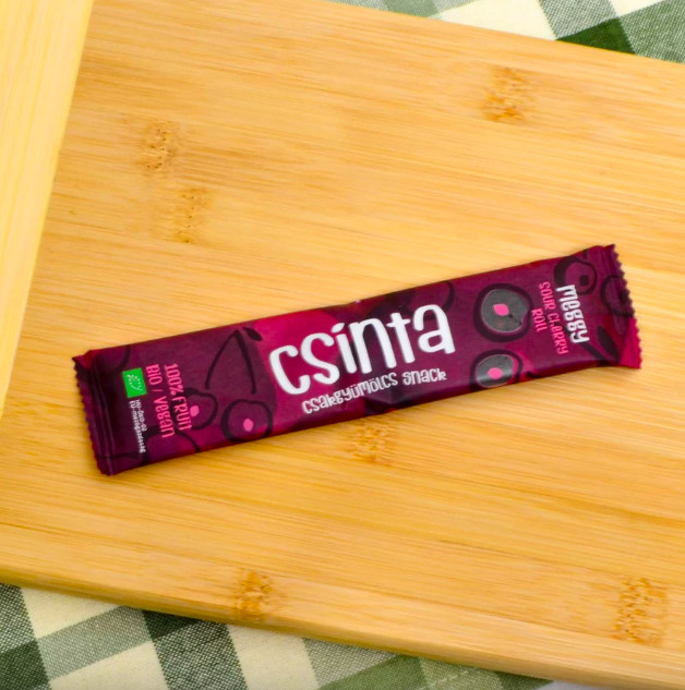 A Meggyes Csinta szárított meggyes gyümölcstekercs, nagy kedvenc a savanykásabb, intenzívebb ízek kedvelőinek. A Csinta friss, bio gyümölcsből alacsony hőfokon szárított nyers gyümölcs lap. A különleges kézműves szárítás miatt megmarad benne a gyümölcs saját íze, aromája, tápanyagai. Alapanyagok hazai, ellenőrzött bio minőségű gyümölcsök: Alma, szilva, meggy, eper, birs, körte, sárgabarack, homoktövis. Csinták nem tartalmaznak semmilyen hozzáadott cukrot vagy édesítőszert, adalékot, aromát, ízesítő szert, még citromsavat vagy pektint sem. Mire jó? A Csinta kíváló kiegészítője a gyermekek tízóraijának, uzsonnájának. Emellett a felnőttek is felfedezték, mint ínycsiklandó napközbeni snack-et. Megajandékozhatod vele magadat vagy másokat. Egy új lehetőség, ami színesíti a palettát a tudatos, egészséges táplálkozás terén. Használhatod különleges ételek, desszertek alapanyagaként. Lehet pl. belőle gluténmentes beiglit, gyümölcs sushit, vagy karamellizált gyümölcsbe tekert olvasztott kecskesajtot is készíteni. Amiből készült: meggy, alma és semmi más. Hozzáadott cukrot nem tartalmaz Általános tápérték 12 g termékben Energia: 165kJ/ 39 kcal Zsír: 0 g- , amelyből telített zsírsav: 0 g, Szénhidrát: 8,5 g, - amelyből cukor: 8,5 g, Fehérje: 0,3 g, Só: 0 g Gyártó: Aloha Kft. Pomáz, Magyarország