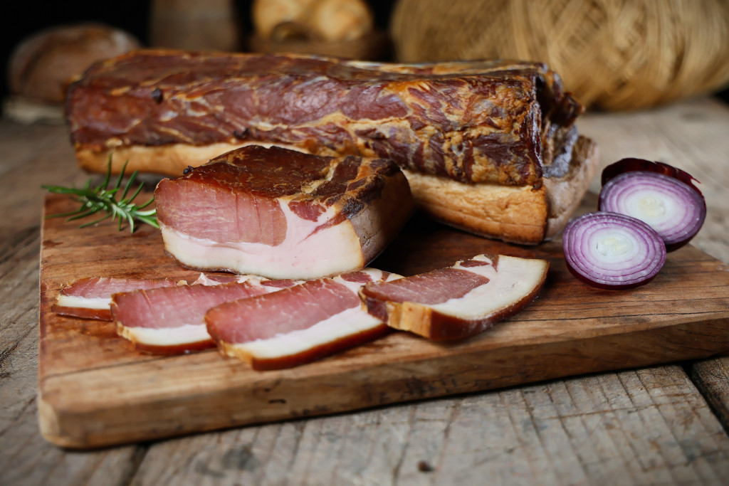 Kenyérszalonna. Összetevők: Sertés háta szalonna, só. Füstölt. Száraz hűvös helyen tárolandó.