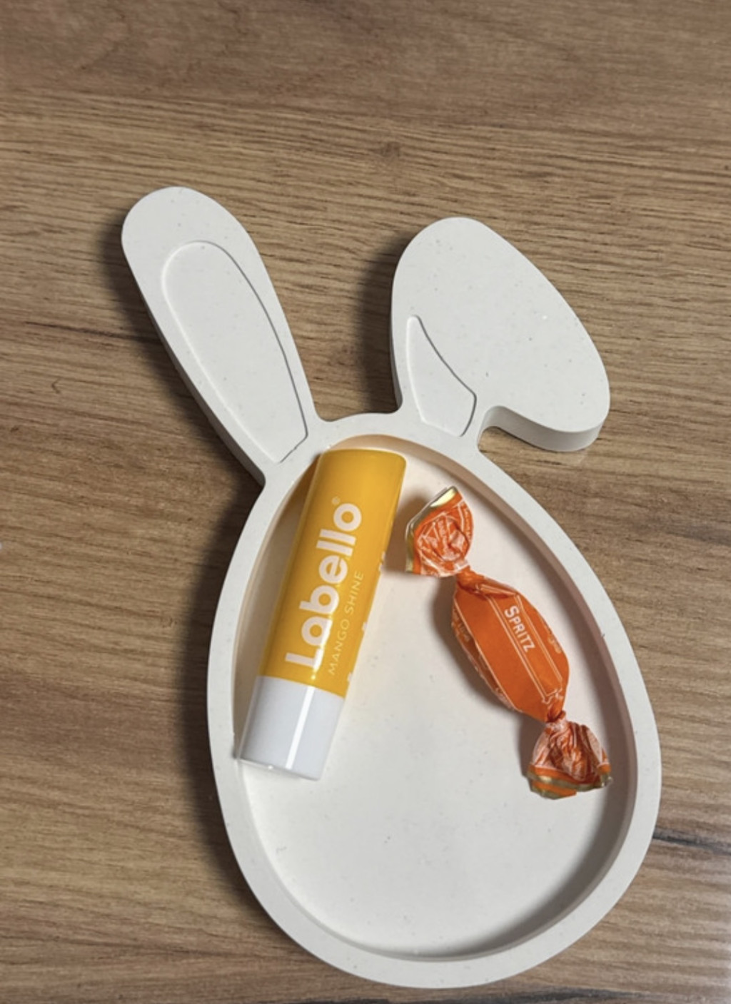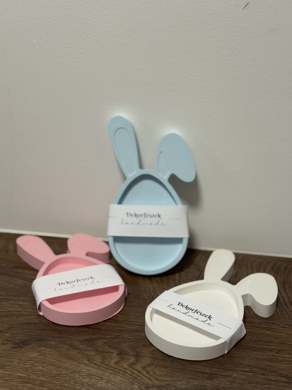 Kerámia hatású húsvéti nyuszi ékszertartó tálca.