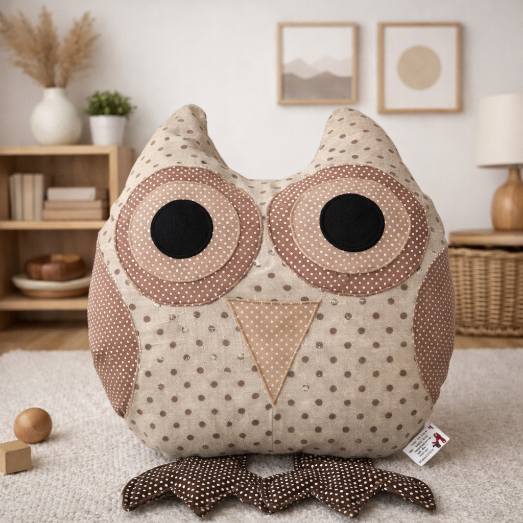 Ez a kedves bagolypárna vászon hatású, különféle mintázató vászonból készült.