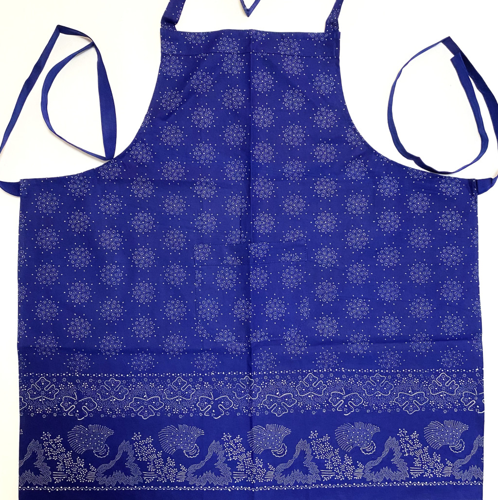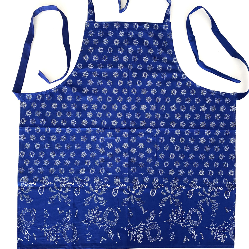 Eredeti kézzel mintázott bordűrös kékfestő kötény.