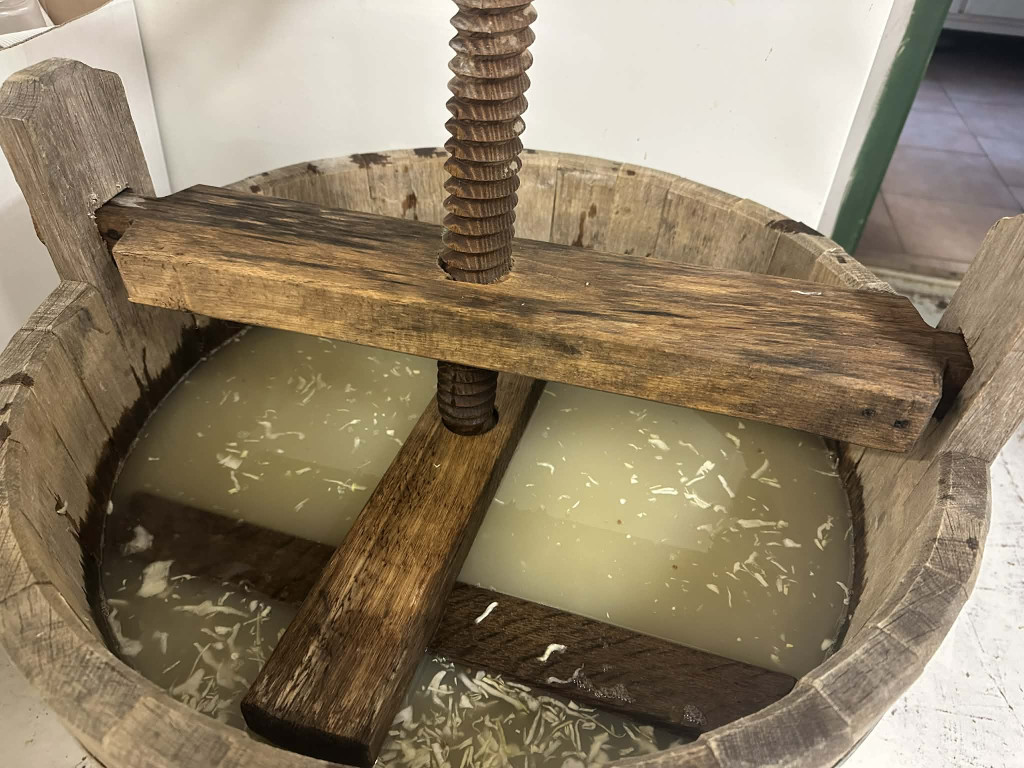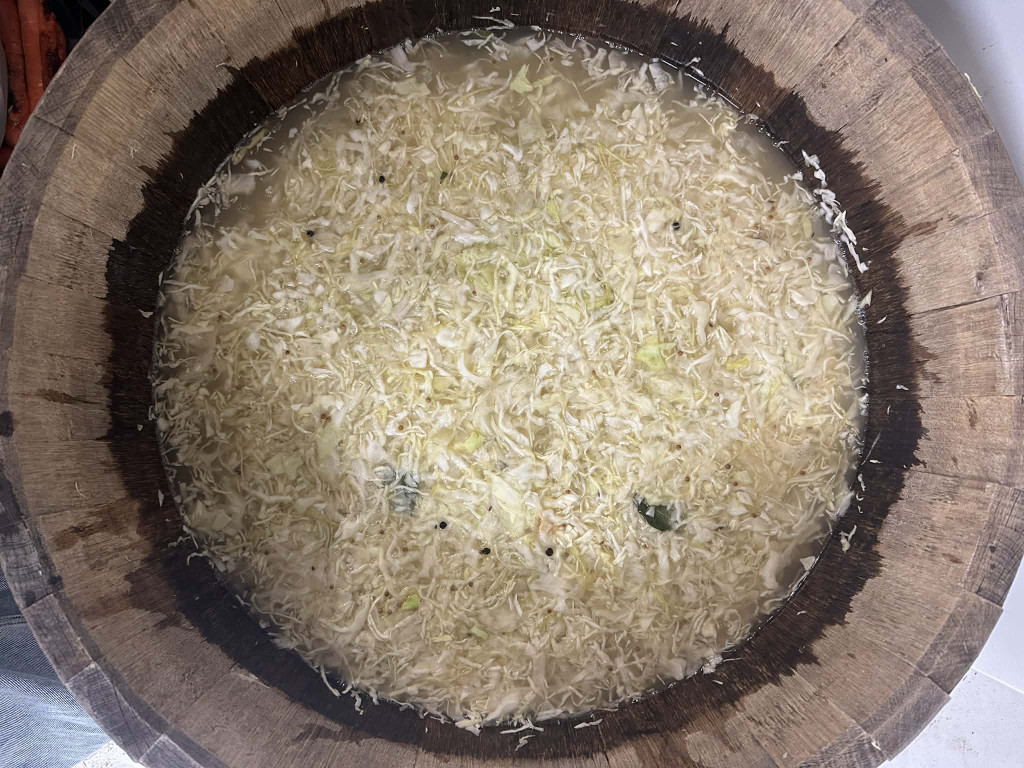 Hagyományos eljárással fermentált savanyú káposzta dézsában érlelve