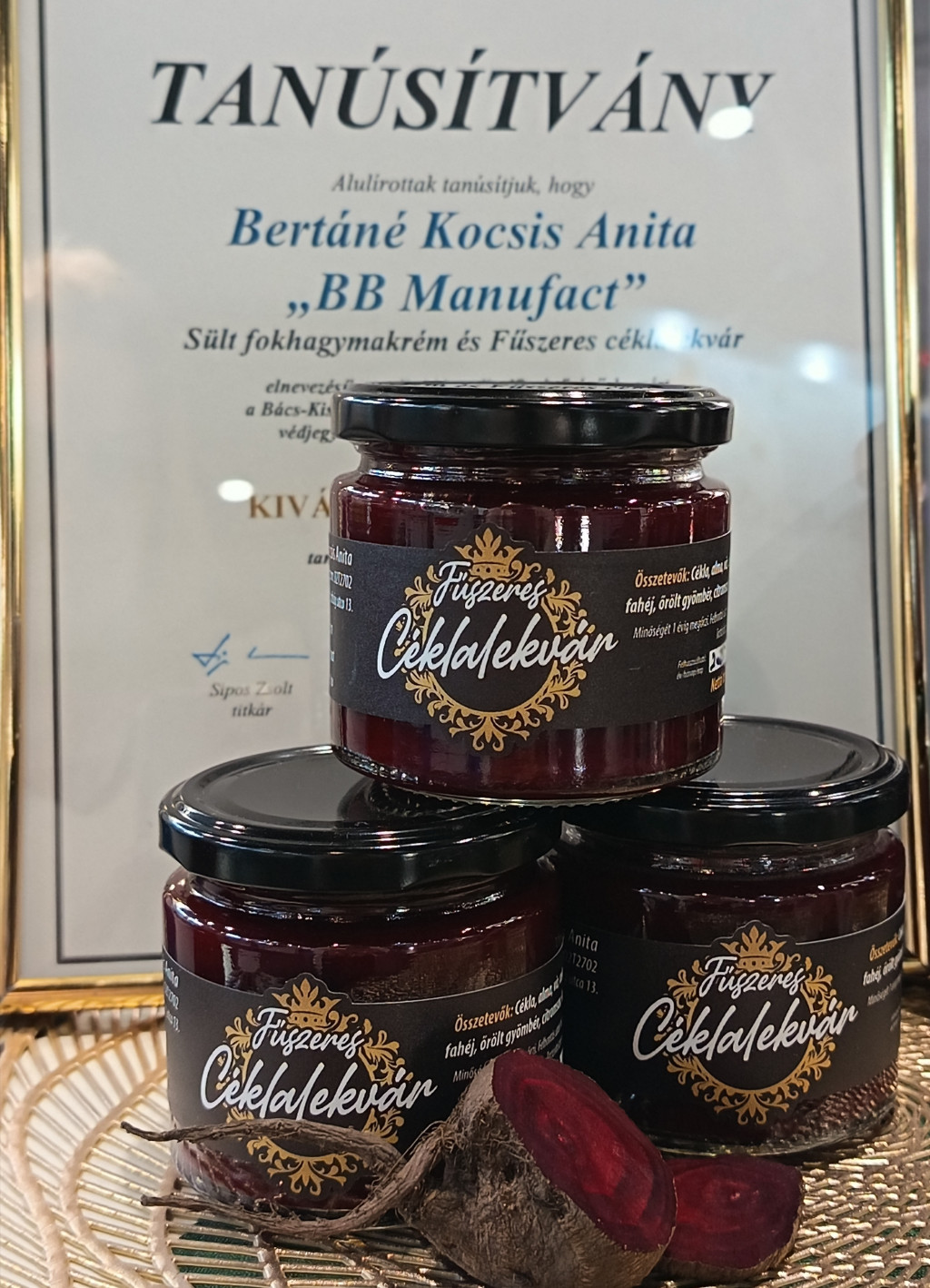 Fűszeres cékla lekvár , mely a jól ismert édes céklánkból készült. Húsok mellé, szendvics feltétként, vagy salátákhoz is ajánljuk. Kiváló kiegészítője a mindennapi étkezéseknek. Tartósítószer mentes termék . Kiváló Bácskai Termék védjegyes termék .