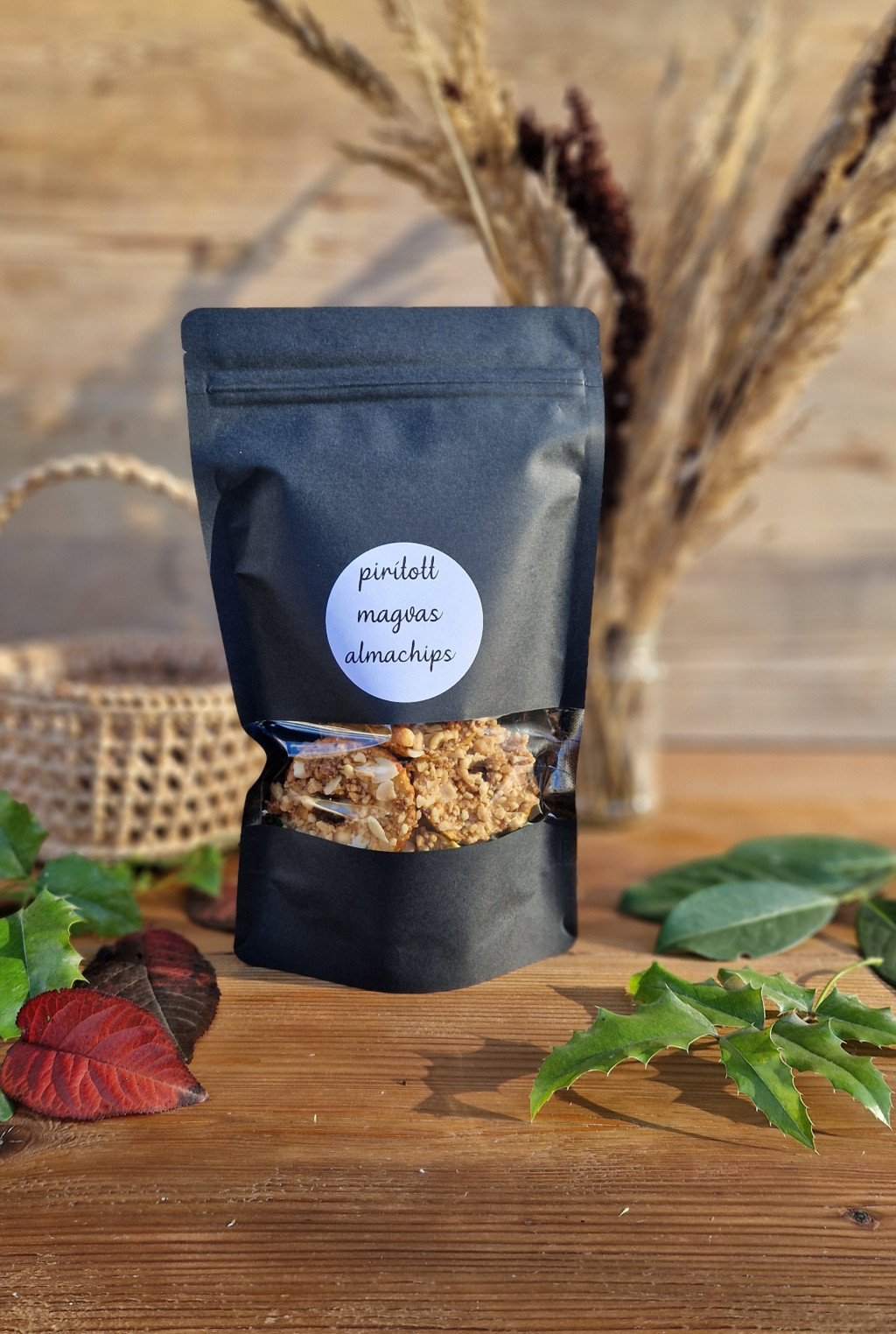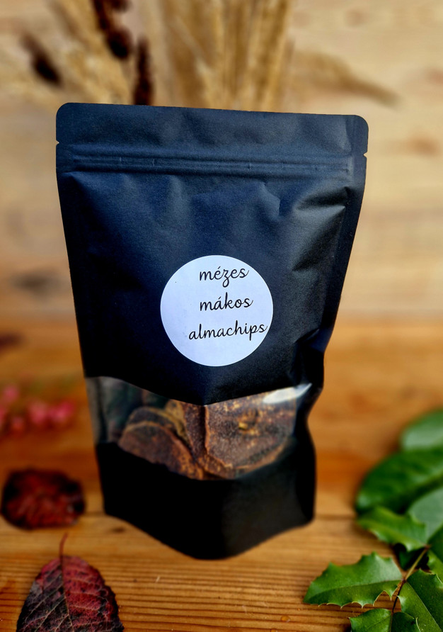 Mézes mákos almachips Egy ősi tartósítási módszer igazán modern köntösben: ezek a mi ropogós almachipseink.  Az almát mézzel és (darált és egész szemű)  mákkal ízesítjük, ropogósra aszaljuk és visszazárható tasakba csomagoljuk, hogy ropogósságát sokáig megőrizze. Tárolása száraz, hűvös, hideg helyen, napfénytől védve! A csomag 120 gramm mézes mákos almachipset tartalmaz.