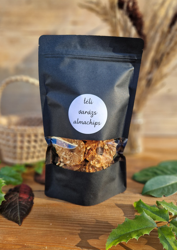 Egy ősi tartósítási módszer igazán modern köntösben: ezek a mi ropogós almachipseink.  Az almát mézzel, földimogyoróval és mézeskalács fűszerekkel ízesítjük, ropogósra aszaljuk és visszazárható tasakba csomagoljuk, hogy ropogósságát sokáig megőrizze.   Tárolása száraz, hűvös, hideg helyen, napfénytől védve! A csomag 120 gramm téli varázs almachipset tartalmaz.